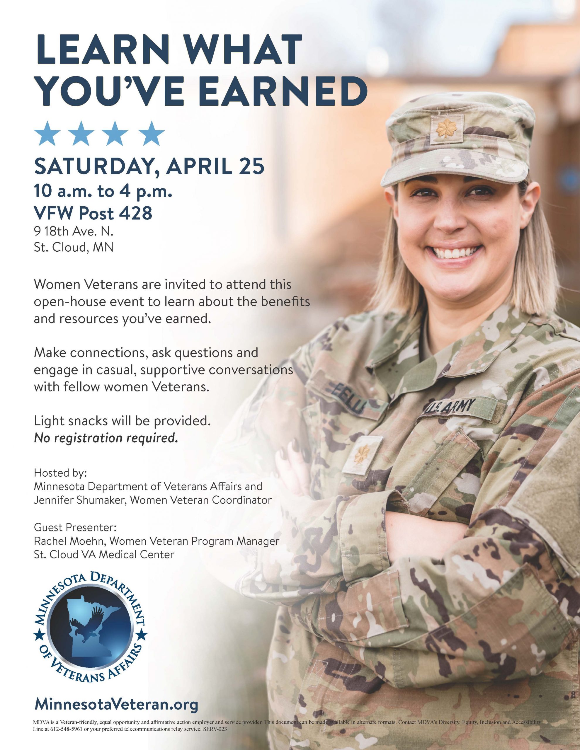 VFW Post 428 9 18th Ave. N., St. Cloud, MN, United StatesWomen Veterans are invited to attend this open-house event to learn about the benefits and resources you've earned.