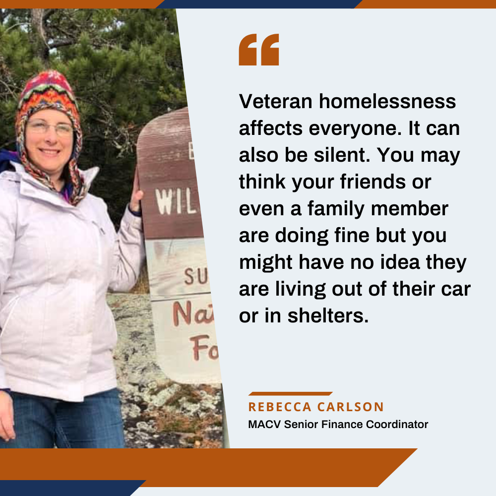 “Veteran homelessness affects everyone. It can also be silent. You may think your friends or even a family member are doing fine but you might have no idea they are living out of their car or in shelters. ” -Rebecca Carlson